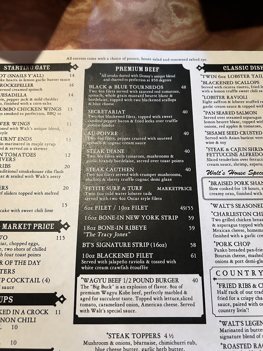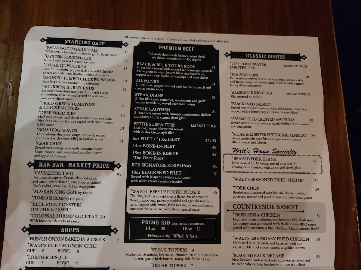 Welcome to Walt's Hitching Post, a hidden gem nestled in Fort Wright, KY. This culinary haven offers a delightful menu, spotlighting exquisite dishes that blend traditional comfort with creative flair. Start your meal with the indulgent French Onion Baked in a Crock or the hearty Walt's Filet Mignon Chili. For a memorable main course, don’t miss the rave-worthy Elk Ribeye, expertly prepared to perfection, as well as the mouthwatering pan-seared salmon and legendary fried chicken.